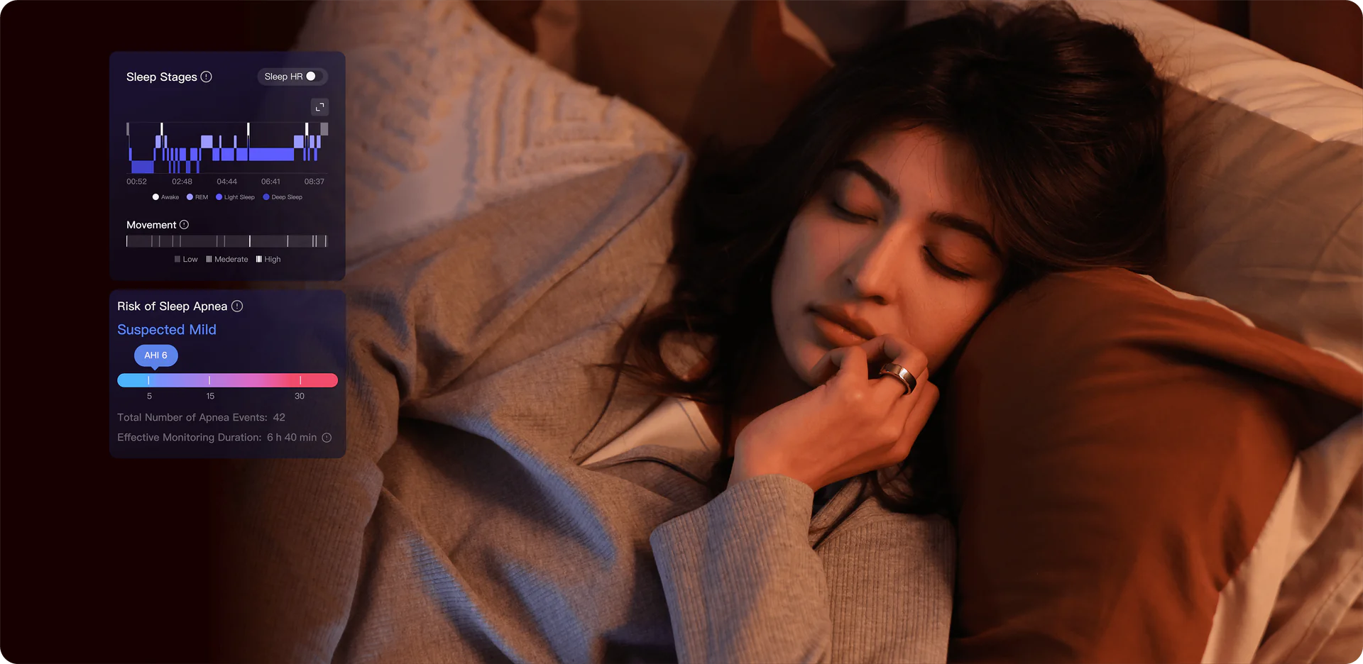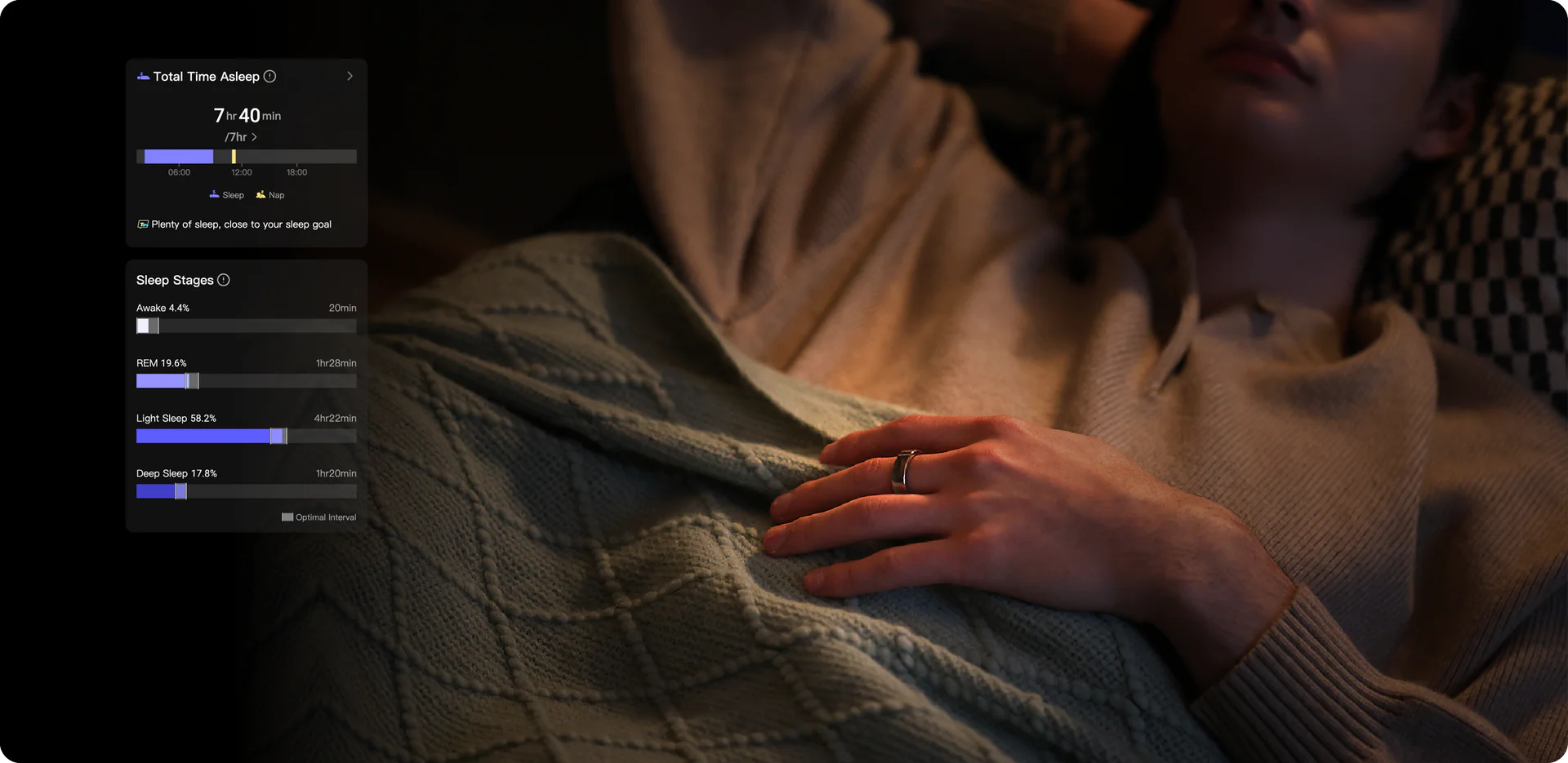 追蹤您的睡眠品質,讓您醒來時神清氣爽。RingConn 透過分析您的睡眠模式,助您以充沛的精力與專注力迎接新的一天。